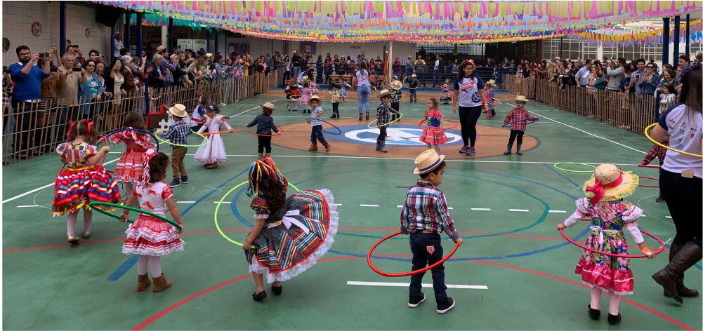 O Arraiá do Imaculada é uma das mais esperadas festas da nossa Comunidade Estudantil. Famílias, alunos, ex-alunos, Irmãs, enfim, todos se juntam para uma incrível festa solidária, que há anos contribui fazendo o bem a diversas instituições de Belo Horizonte e Região Metropolitana. Além das barraquinhas solidárias, o CICBH também faz a arrecadação de alimentos não perecíveis, o que dá ainda mais brilho para o evento. As quadrilhas são um espetáculo à parte. Crianças, adolescentes e adultos bastante envolvidos em criar as mais diferentes coreografias, trazendo muita animação para todos. Nossa decoração também é impecável! Os elementos que compõem o visual são também uma contribuição das famílias e alunos, especialmente os da Educação Infantil e Ensino Fundamental I, que neste ano decoraram pratos de papel e capricharam na criatividade para deixar o Arraiá ainda mais bonito. Pra completar, uma banda traz toda a musicalidade caipira, tocando nos intervalos das danças e fazendo a alegria de todos. Mais uma vez, uma festa para ser guardada em nossos corações. Agradecemos a todos pela presença, envolvimento e empolgação!