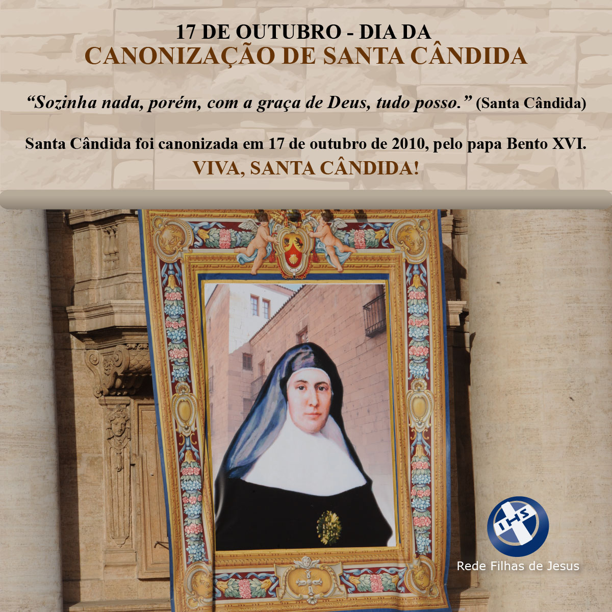 17 de outubro | Aniversário de Canonização da Santa Cândida