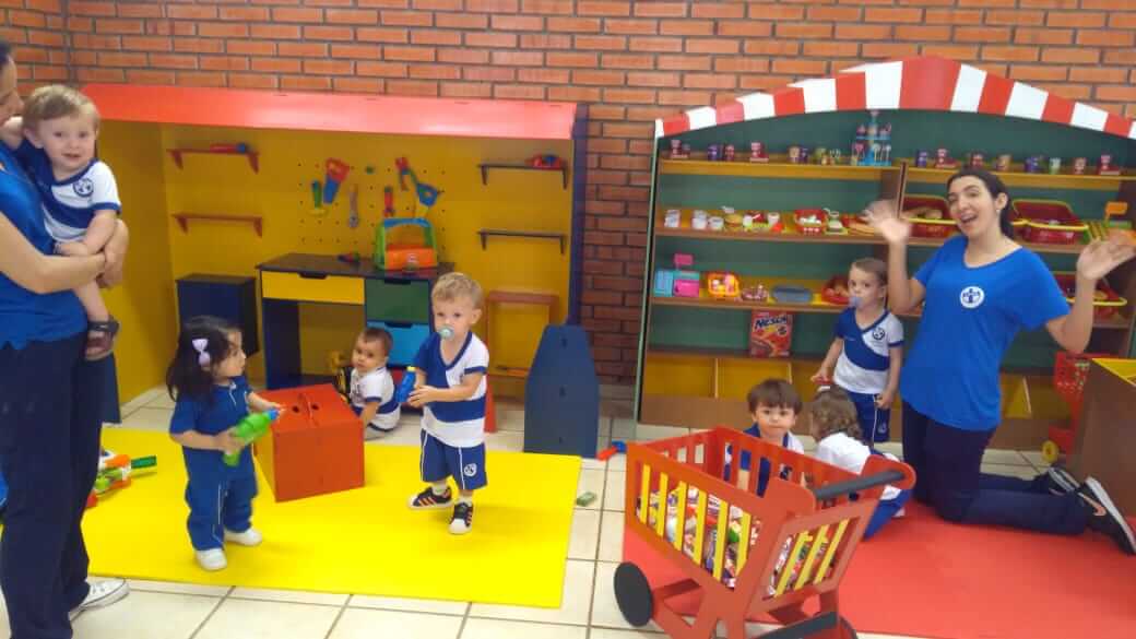 Seguindo a linha de aprendizagem “é brincando que se aprende”, as crianças entraram no mundo de “faz-de-conta” e brincaram pra valer na “oficina mecânica”, “mercadinho” e “salão de beleza”.