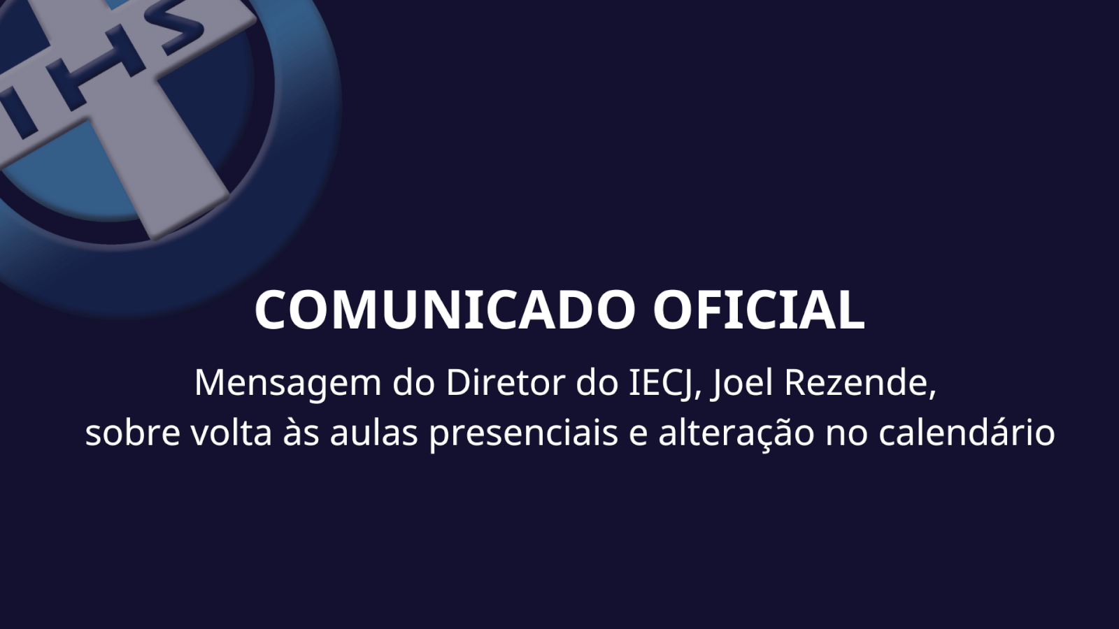 Mensagem do Diretor do IECJ, Joel Rezende, sobre volta às aulas presenciais e alteração no calendário.