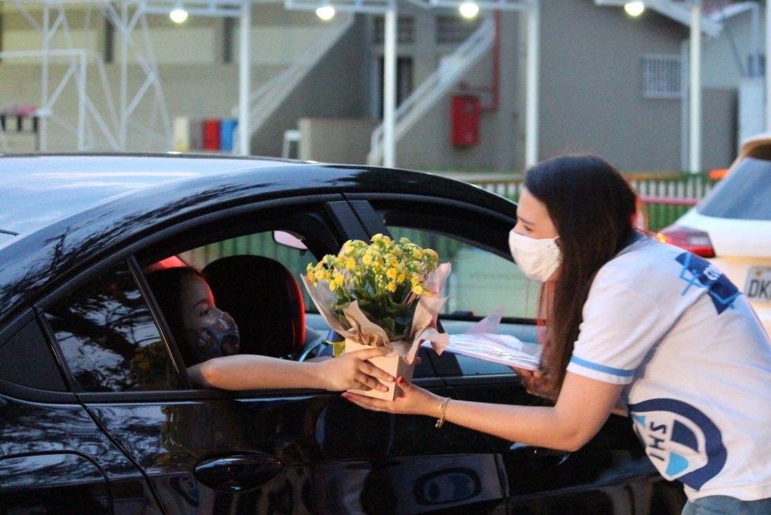 Mesmo de dentro dos carros e de máscaras, os olhinhos emocionados dos alunos fizeram desses instantes um sinal de alento e esperança em dias melhores.