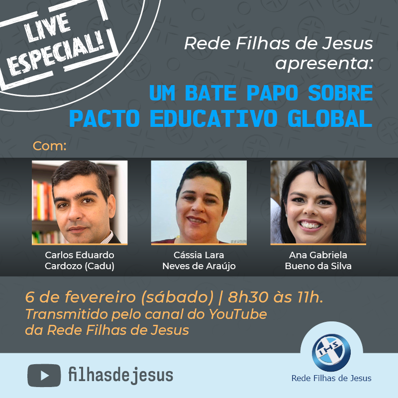 Neste sábado, 6 de fevereiro, será realizada uma live especial sobre o Pacto Educativo Global, das 8h30 às 11h.