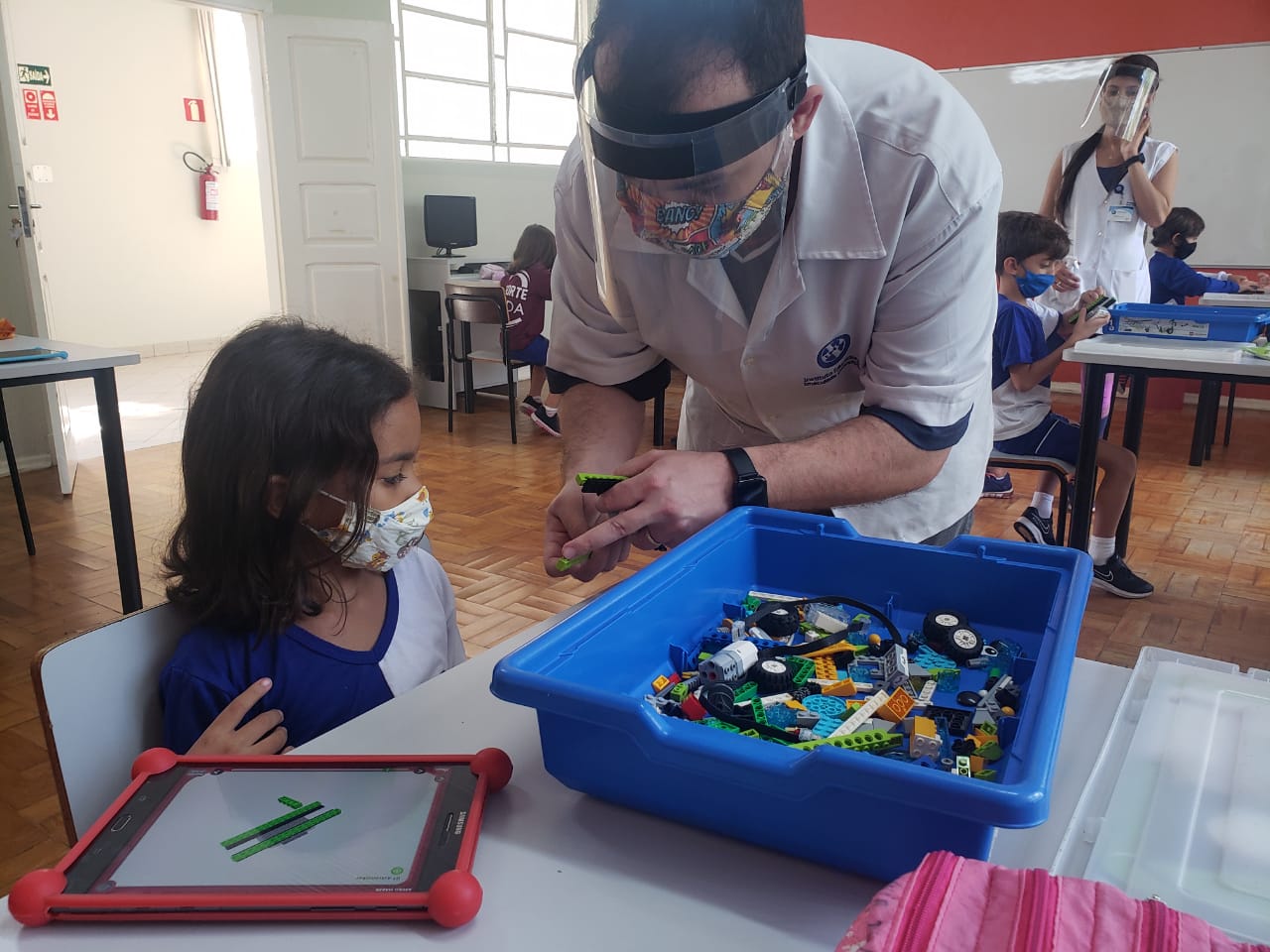 Os alunos de Ensino Fundamental estão realizando as aulas de Robótica no formato híbrido.