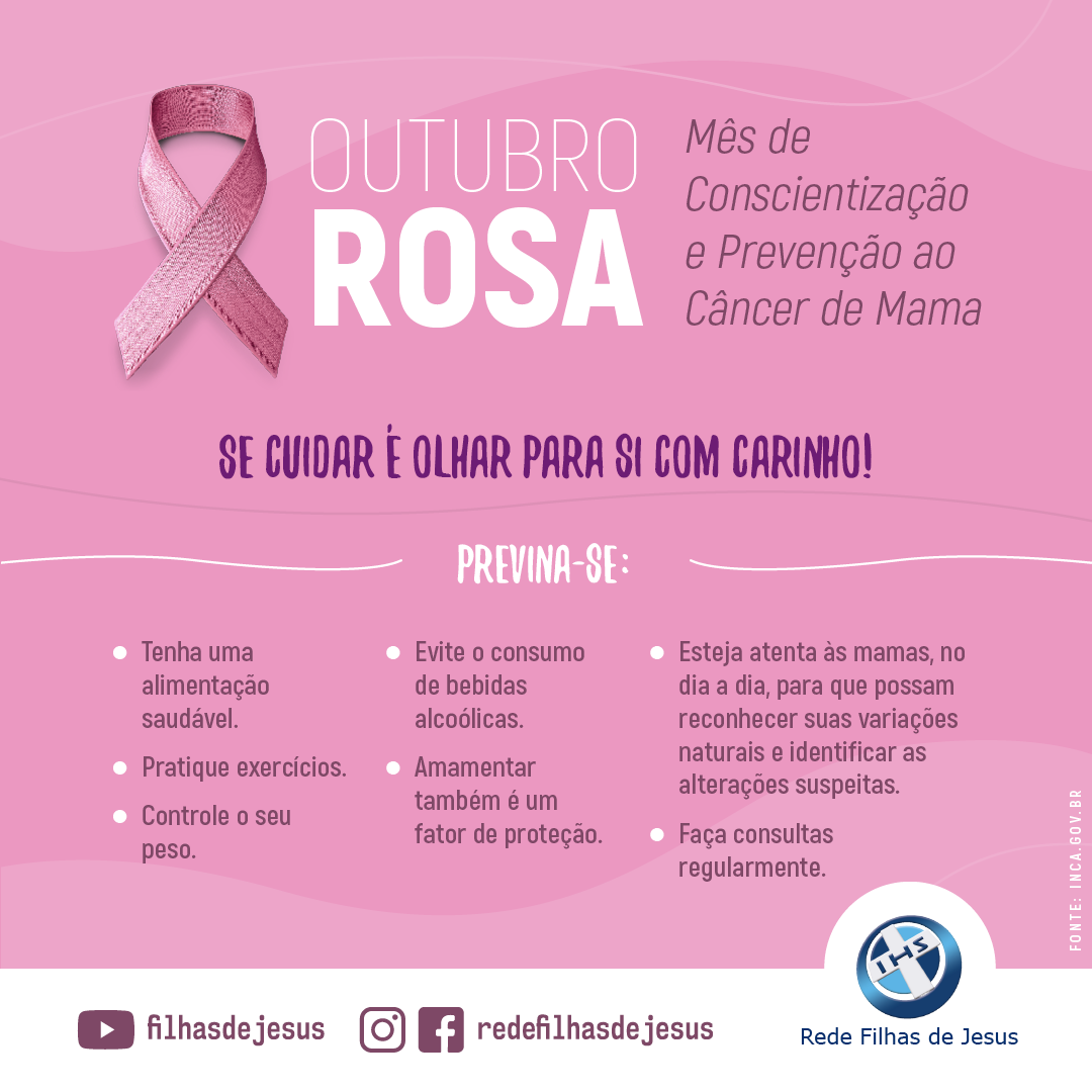 O Outubro Rosa é realizado anualmente, com o objetivo de informar, alertar e conscientizar sobre a importância do autocuidado e da prevenção ao câncer de mama e de colo do útero.