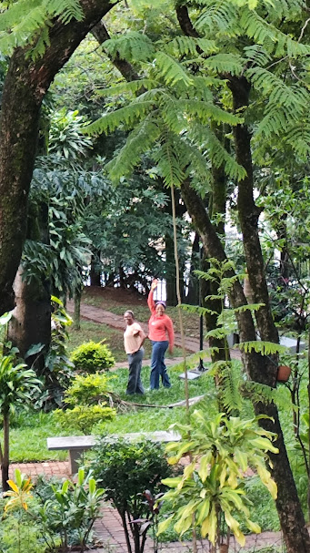 Ao final da tarde, um tempo breve de relax. Aí não deu outra: tinha irmãs no meio da mata contemplando a natureza…