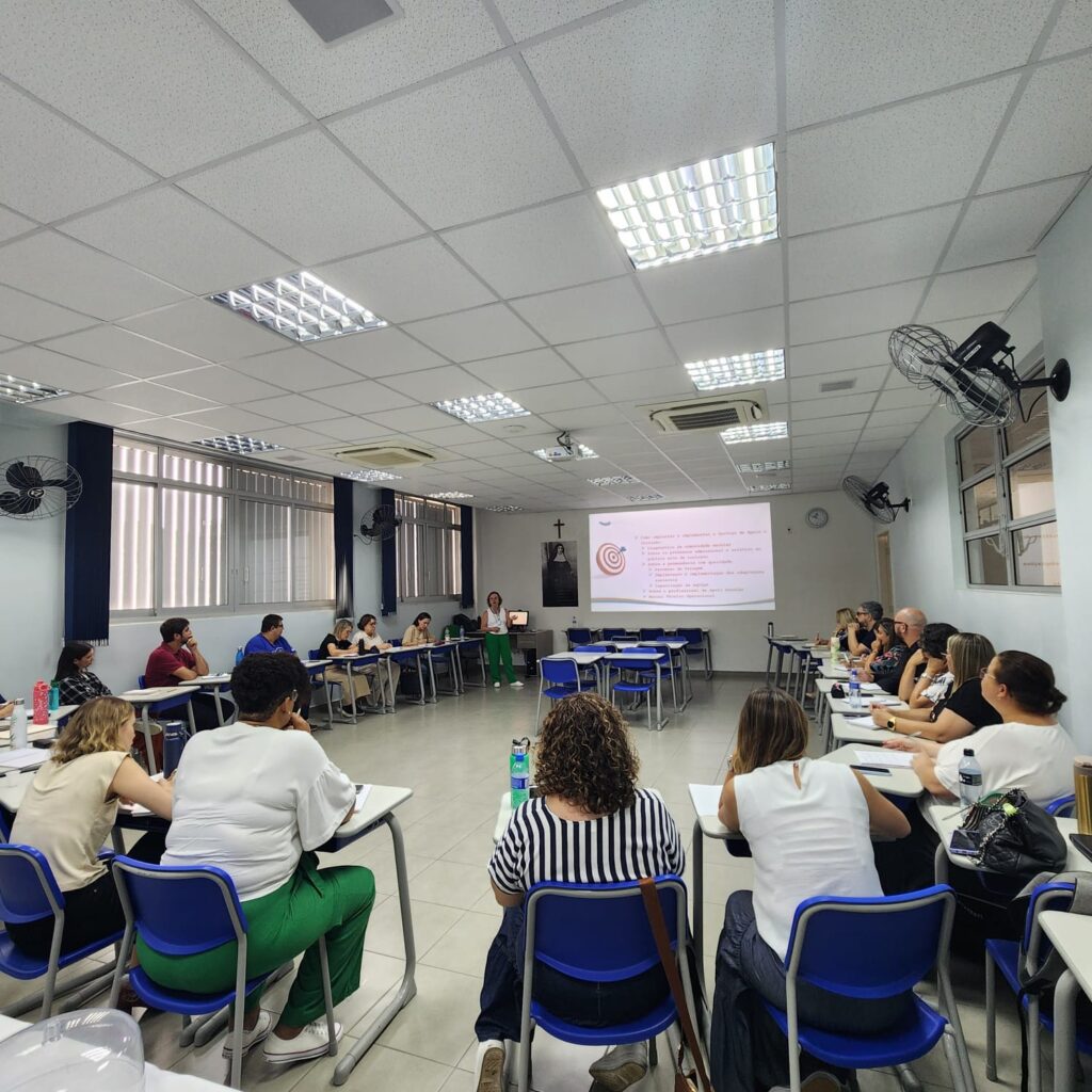 No dia 21 de janeiro, realizamos o Encontro de Comunicação e Marketing com a equipe das escolas e do Centro de Serviços Compartilhados da Rede Filhas de Jesus. O encontro foi marcado pela apresentação das estratégias e dos resultados de 2025, conduzida pela Gestora de Comunicação e Marketing, Renata Dantas, proporcionando uma visão integrada dos