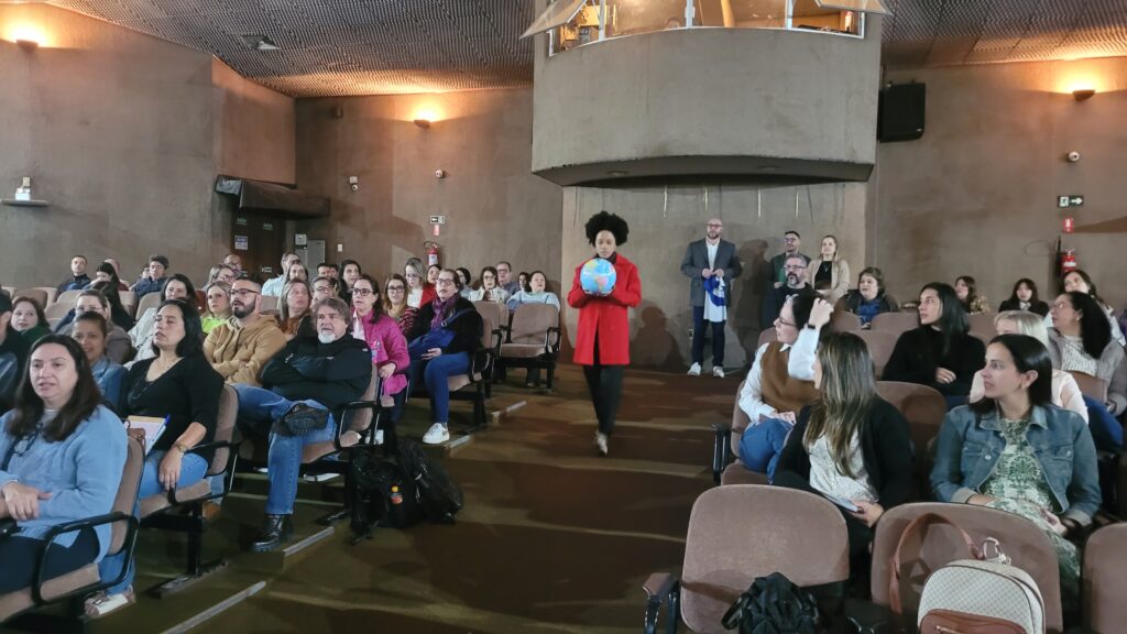 A formação, dividida em dois eixos principais, abordou, primeiramente, o tema “Da aula à experiência: o professor como designer da aprendizagem”, conduzido por Iris Maltez, consultora de experiência pedagógica. A proposta teve como objetivo capacitar os educadores a irem além do modelo tradicional de ensino, transformando a sala de aula em um ambiente dinâmico e interativo. O professor foi incentivado a planejar e criar percursos de aprendizagem que estimulem a curiosidade, a autonomia e a participação ativa dos estudantes, tornando o processo educativo mais significativo.