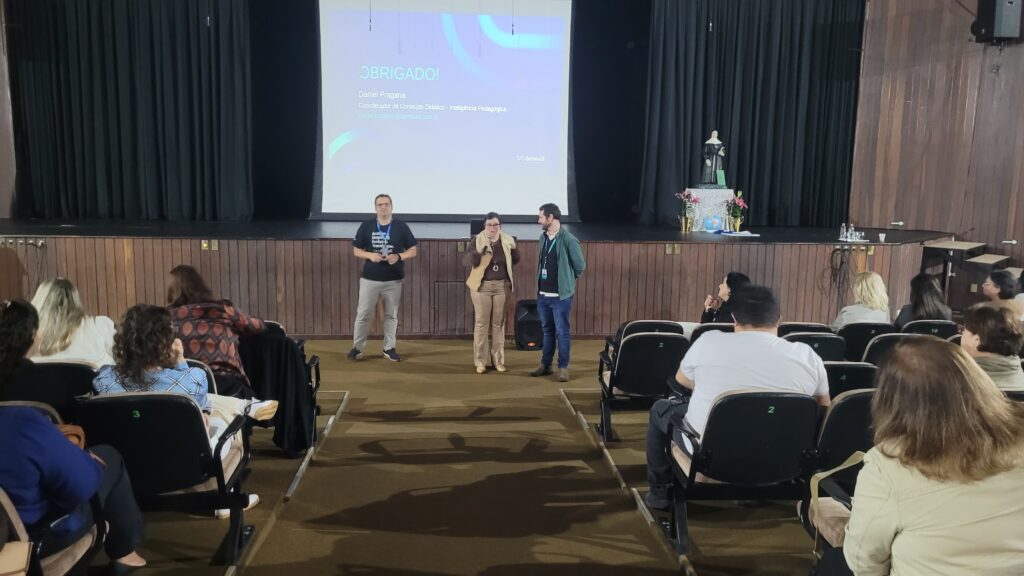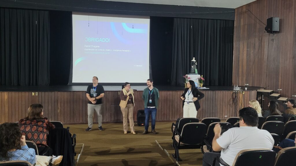 Em seguida, o tema “Explorando o poder da criatividade: estratégias e técnicas para inovar e inspirar no ensino”, conduzido por Daniel Pragana, coordenador de conteúdo didático, complementou a formação, destacando a importância de uma abordagem pedagógica criativa. Os educadores conheceram ferramentas e metodologias que incentivam o pensamento crítico, a resolução de problemas e a inovação. A intenção é que, ao se sentirem mais confiantes e inspirados, os professores possam transmitir essa paixão e criatividade aos alunos, preparando-os para os desafios de um mundo em constante transformação.